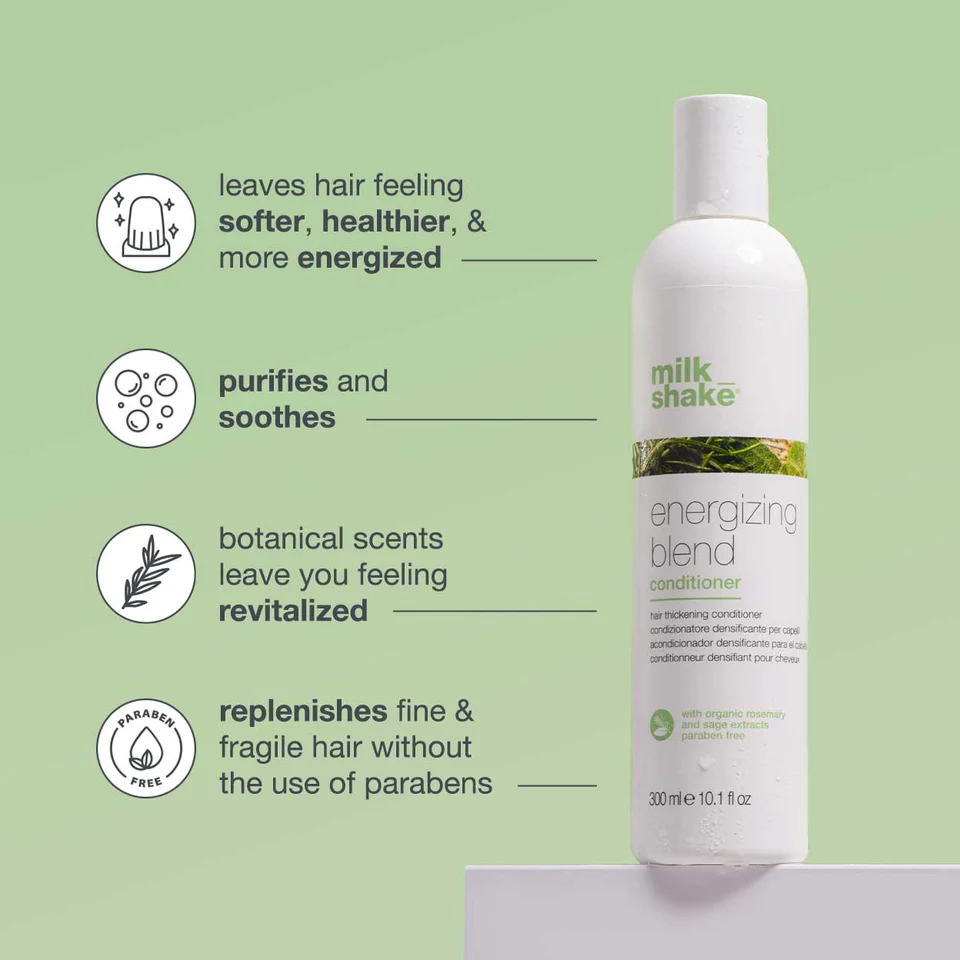 milk_shake energizing blend conditioner is for fine, thinning and fragile hair, hydrating, detangling and providing softness without weighing the hair down.