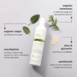 The natural powers in organic rosemary, sage and fioravanti balm extract purifies hair while increasing the supply of nutrients and strengthening the hair. The blend of botanical extracts and special conditioners invigorates the hair stem and gives softness. Panthenol provides more density to the hair, and essential oils and eucalyptus instil a pleasant energizing feeling, leaving the scalp refreshed.