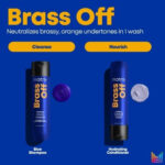 Follow with Brass Off Conditioner, leave for 1–2 minutes, then rinse.